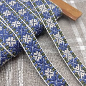 Ullbånd – koftebånd «Haugtussa», blå og grønn. 25 mm