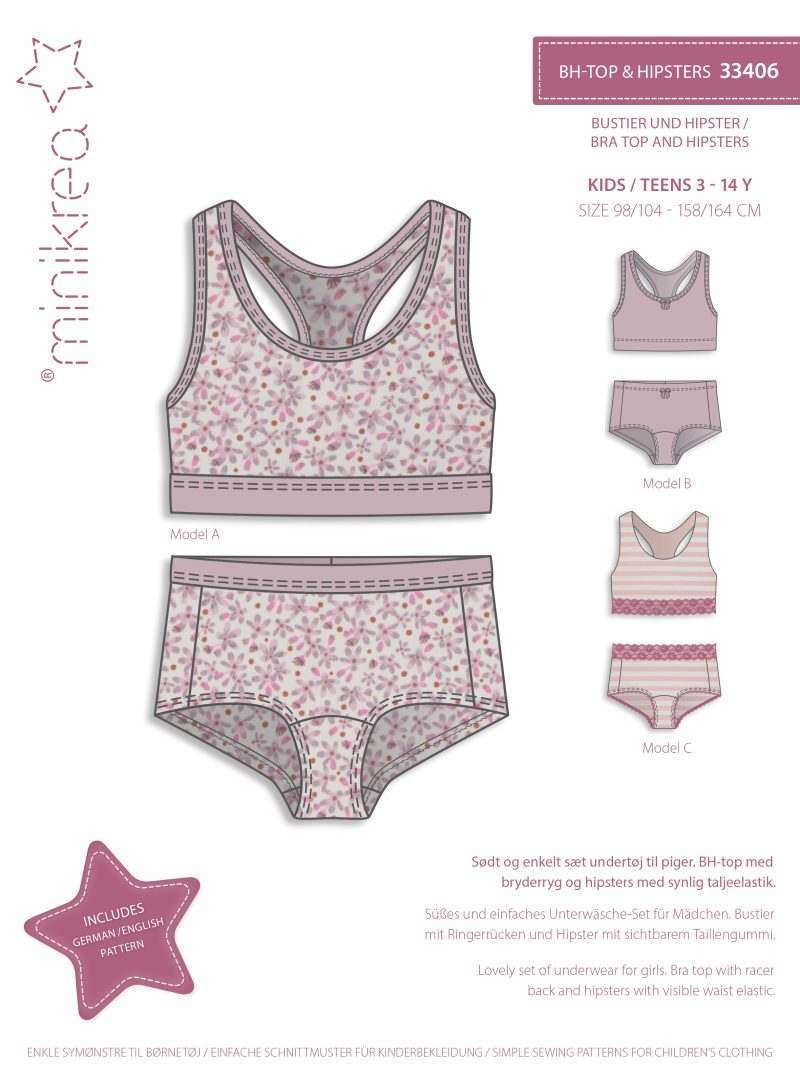 33406 Minikrea Bh-topp og hipsters 3-14år