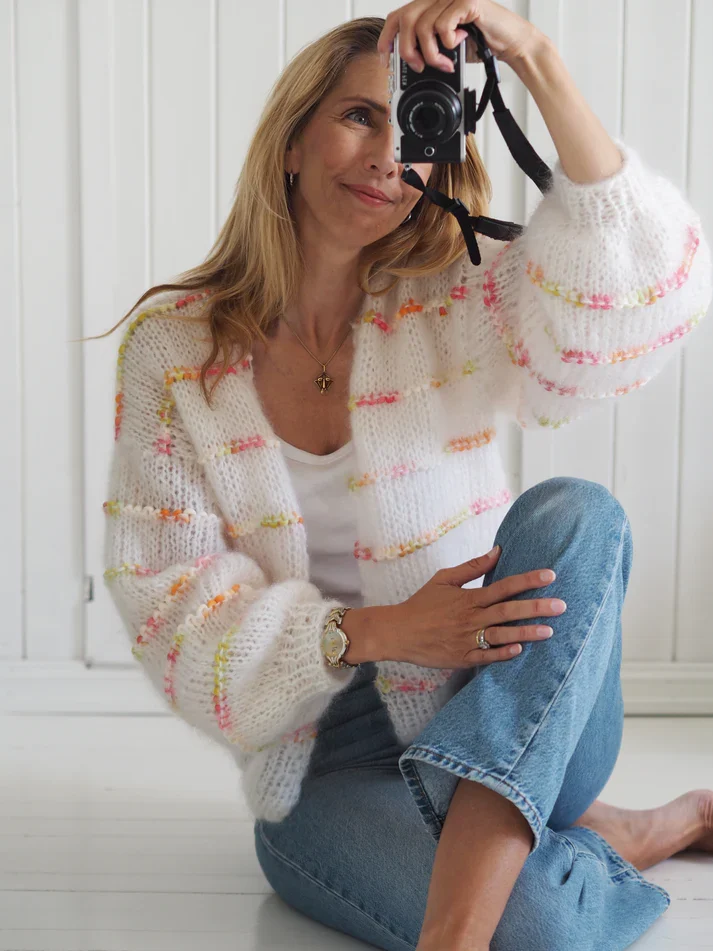 Bella fra Permin; 75% mohair, 20%ull, 5% polyamide, 50 g = 145 m.