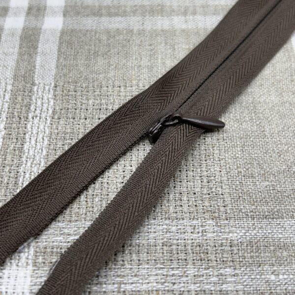 Hjem Sytilbehør og mønster Knapper, glidelås og borrelås Glidelås Glidelås, ikke delbar Skjult glidelås - Ikke delbar Glidelås 4mm skjult 60cm Brun