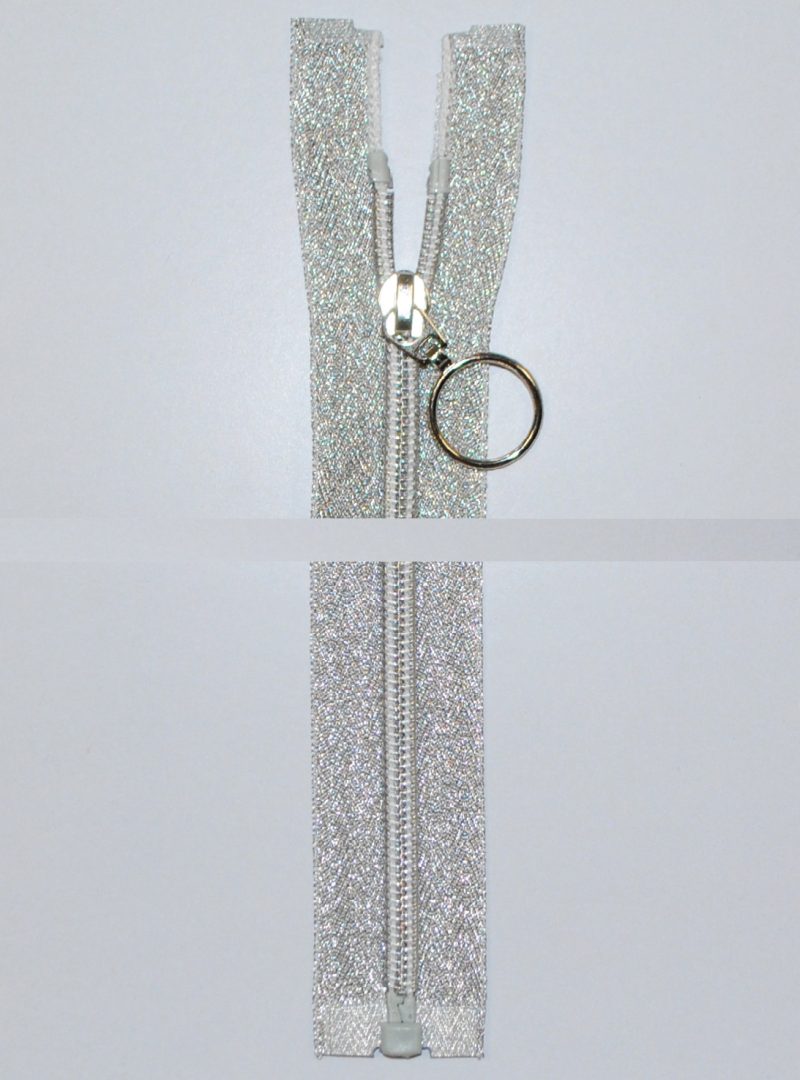 Glidelås delbar 55cm, Lurex sølv
