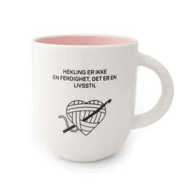 Hekling er ikke en ferdighet, det er en livsstil. Motiv: Hjerte med heklekrok. Farge innsiden: Rosa