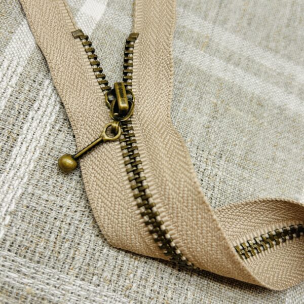 Hjem Sytilbehør og mønster Knapper, glidelås og borrelås Glidelås Metallglidelås «Revehale» 4 mm 20cm Beige