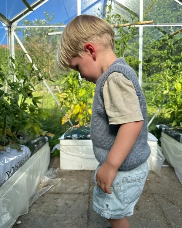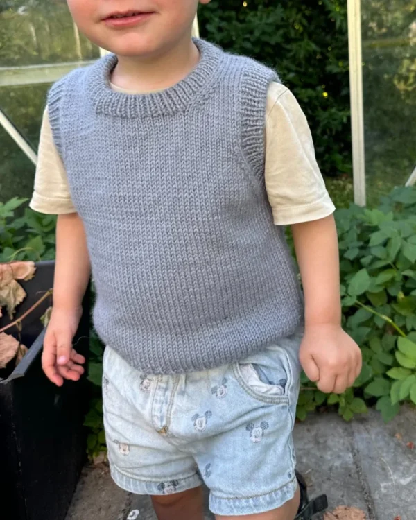 Novice Slipover Junior bør ha en bevegelsesvidde (positive ease) på ca. 10 cm i forhold til bystemålet. Størrelsene 1-2 (2-3) 3-4 (4-5) 5-6 (6-7) 7-8 (8-9) 9-10 (10-12) 12-14 år svarer til et bystemål på omtrent 53 (54) 56 (57) 59 (62) 64 (68) 72 (77) 82 cm. Målene på den ferdige vesten er angitt på forsiden av oppskriften (merk at disse målene kun gjelder dersom strikkefastheten overholdes). Hvis mottageren f.eks. måler 62 cm rundt om bysten, bør du strikke str. 6-7 år. En vest i str. 6-7 år har overvidden 72 cm og vil i nevnte eksempel gi en bevegelsesvidde (positive ease) på 10 cm. Hvis det målte bystemålet avviker fra aldersguiden, bør du være oppmerksom på å tilpasse lengdene til den personen du strikker til. Det samme gjelder hvis barnet er lavere/høyere enn gjennomsnittet.