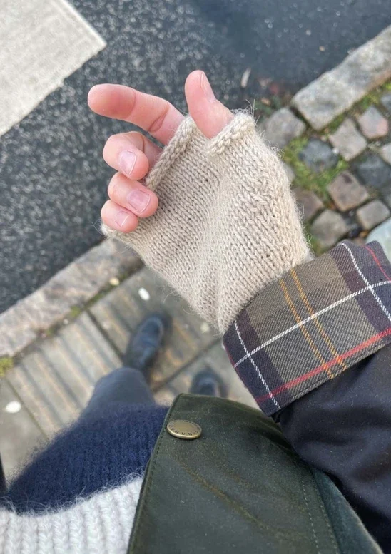 Penny Gloves strikkes fra håndleddet og frem mot fingrene. De kan strikkes rundt på strømpepinner eller på en lang rundpinne med Magic Loop-teknikk.