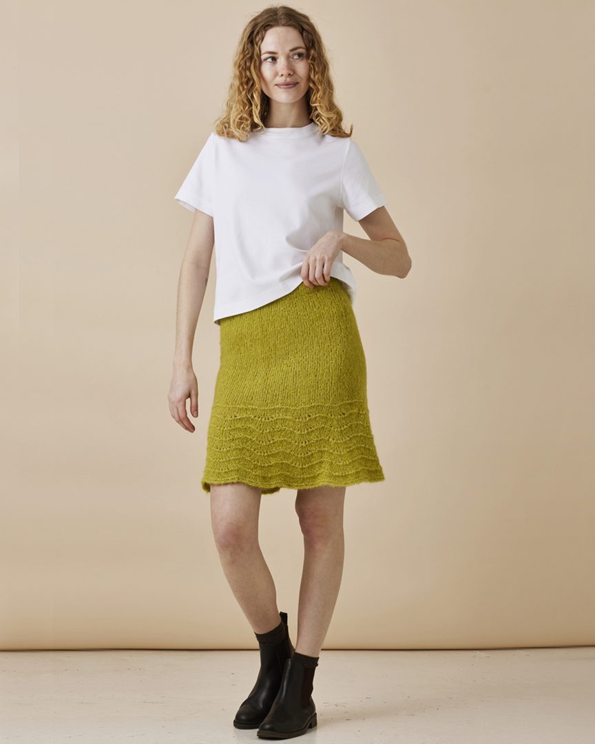 Hjem Strikkeoppskrifter og tilbehør Oppskrifter Permin - oppskrifter Permin Dame Skjørt med bølgemønster – Sally by Permin