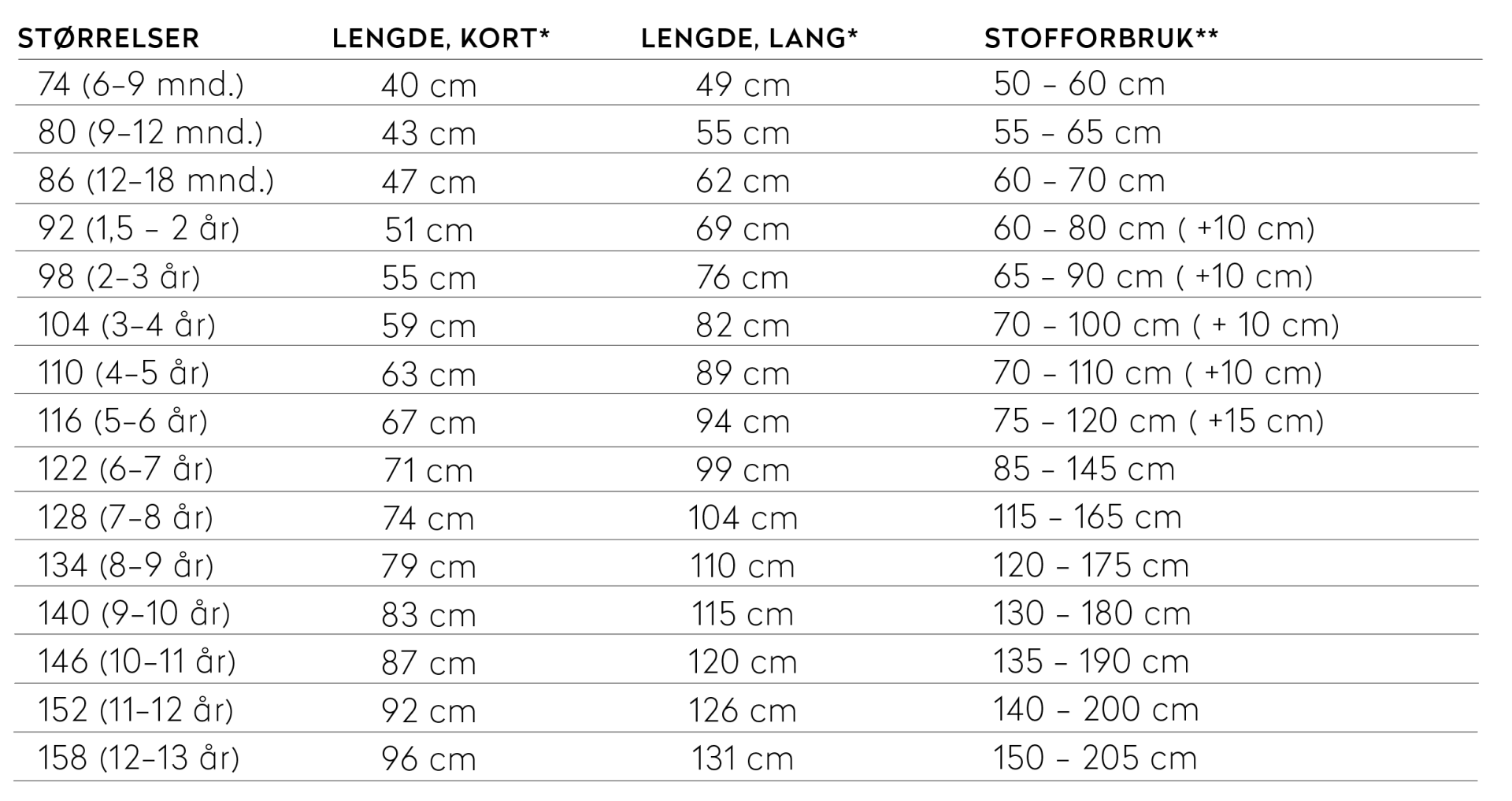VICTORIAKJOLEN TIL BARN er en fin og behagelig kjole, som kan sys med langt eller kort skjørt, og med flere variasjonsmuligheter for ermer: Lange ermer, T-skjorte-ermer eller klokkeermer. Kjolen har overdel med falsk omslag som er kantet med kantbånd. Du kan velge om du vil sy kjolen med eller uten lommer. Skjørtet er ganske smalt i fasongen, men ikke tettsittende.